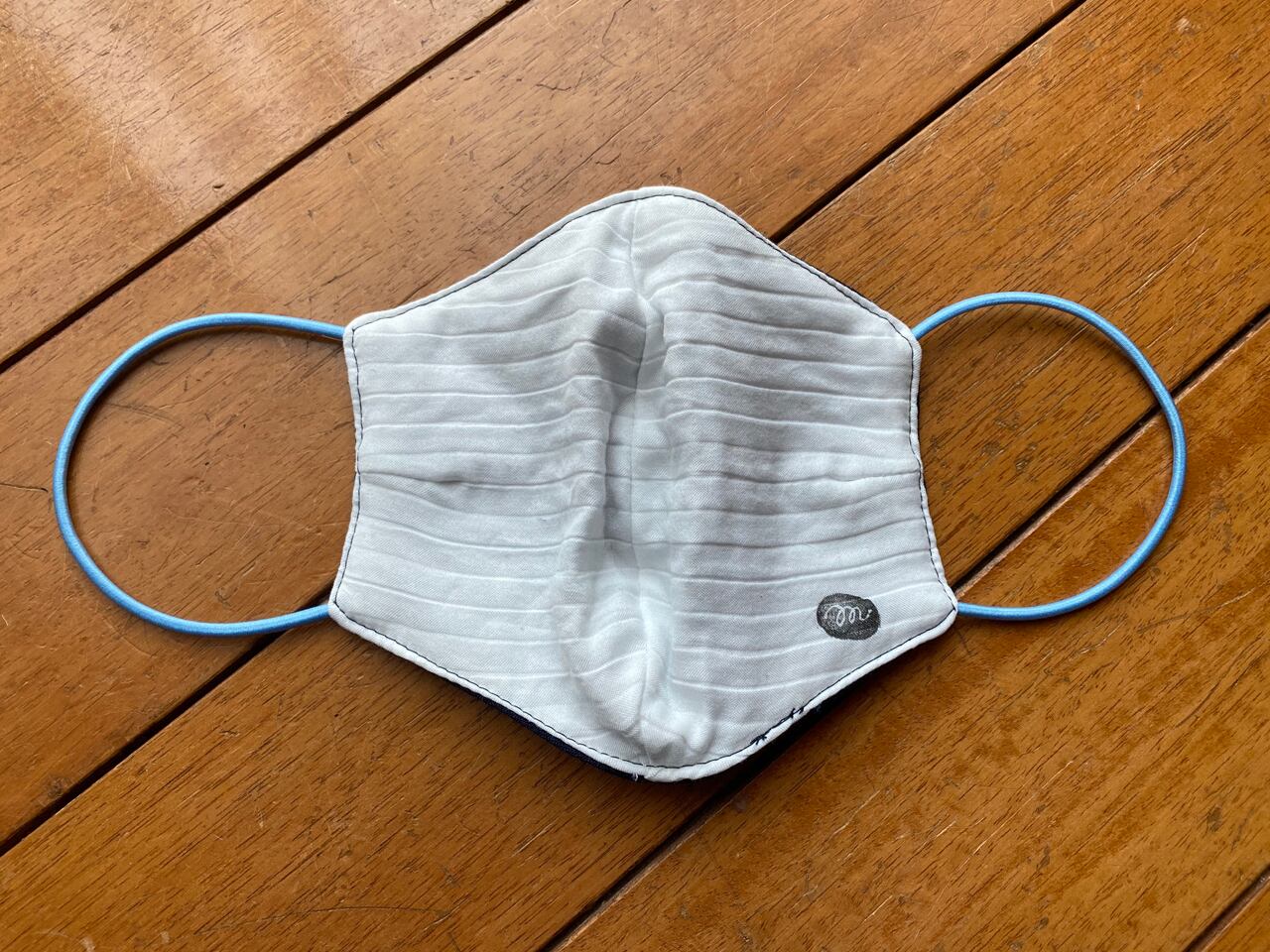 武州本藍染生地で作ったマスク。裏地はダブルガーゼをさらに2枚重ねました。綿100%