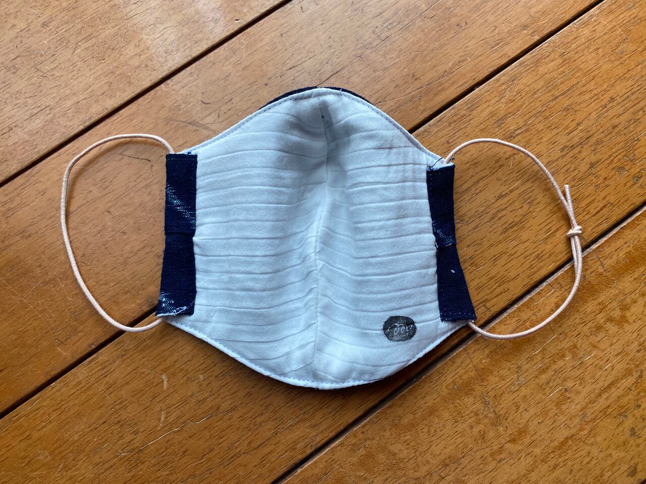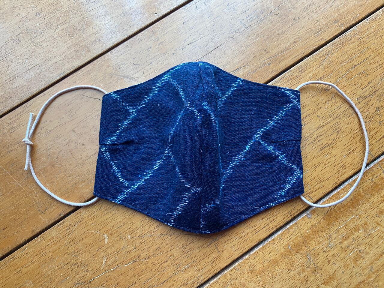 木綿の藍染古布で作ったマスク。裏地はダブルガーゼをさらに2枚重ねました。綿100%