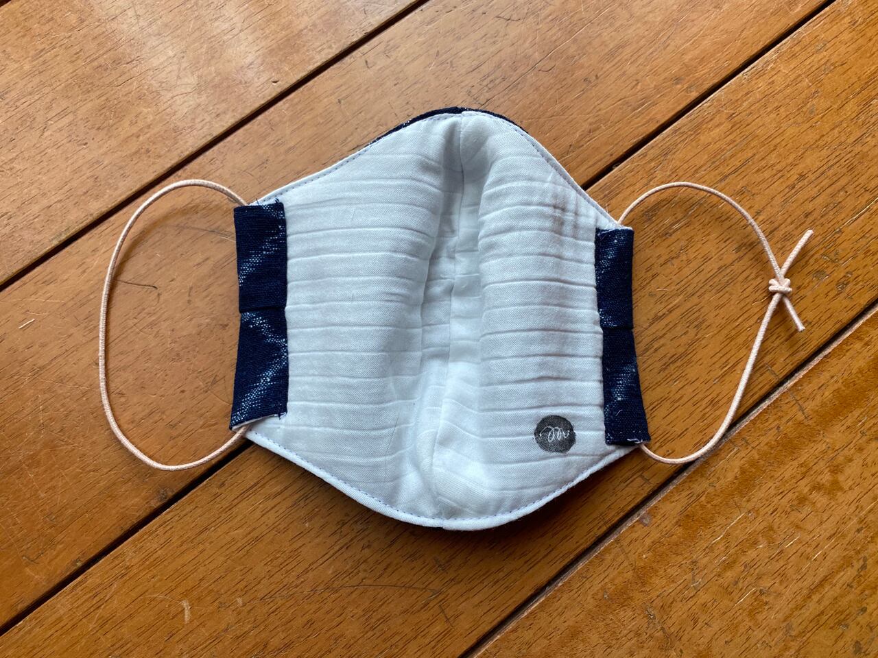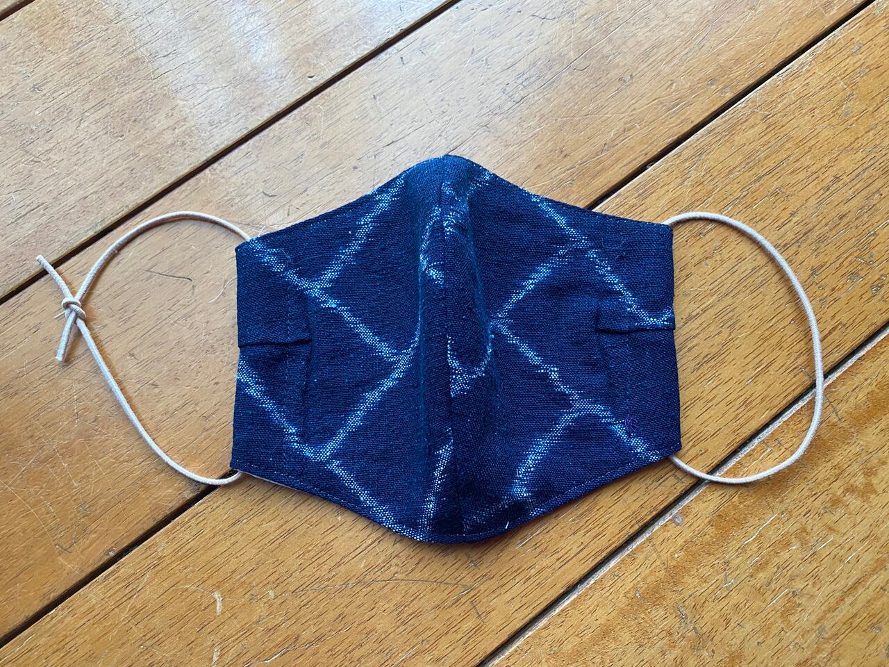 木綿の藍染古布で作ったマスク。裏地はダブルガーゼをさらに2枚重ねました。綿100%