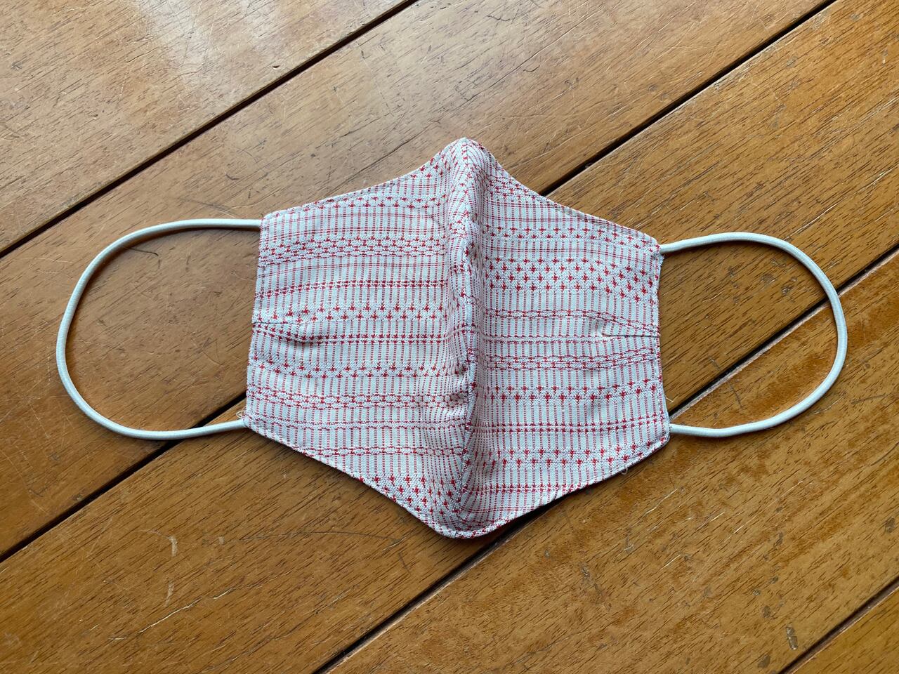 サイズ:縦約13センチx幅28センチ(伸ばさずに置いて測りました)二つに折った状態で鼻の部分から布の端まで約10センチ ゴム:3ミリ丸ゴム