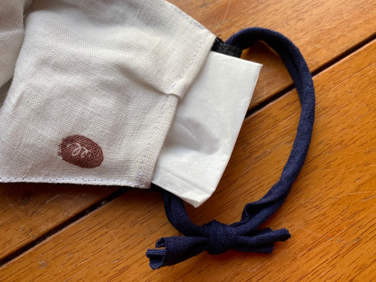 表は本麻の古布。麻100% 裏地はリネン。麻100% 裏側がポケットになるように仕立ててあります。抗菌シートなどを挟むことで機能性を追加することもできます。(ポケット写真は本製品のものではありません)