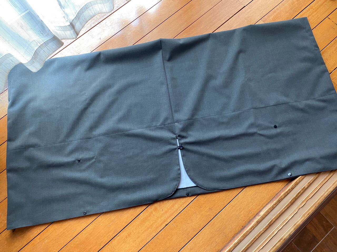 素材は裏コーティングされたコットンツイル(裏は薄いグレー)。裏地はありません。