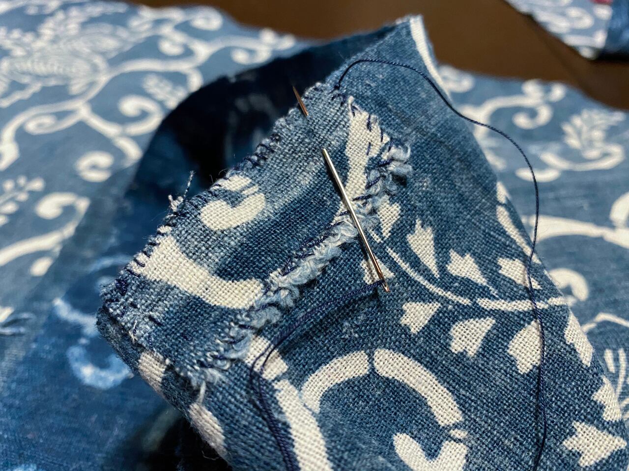 端っこに気になる縫傷があったので、継ぎ当てて補修してあります。