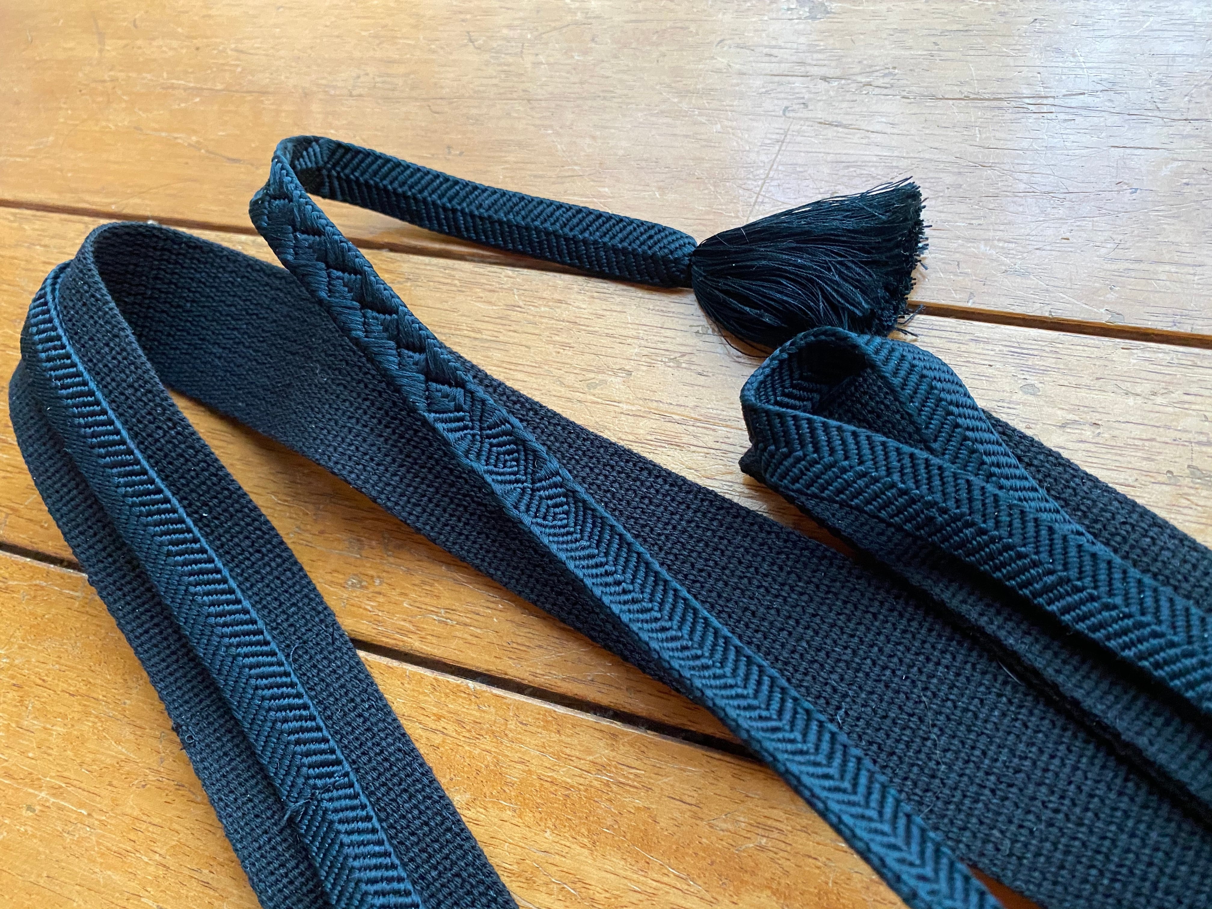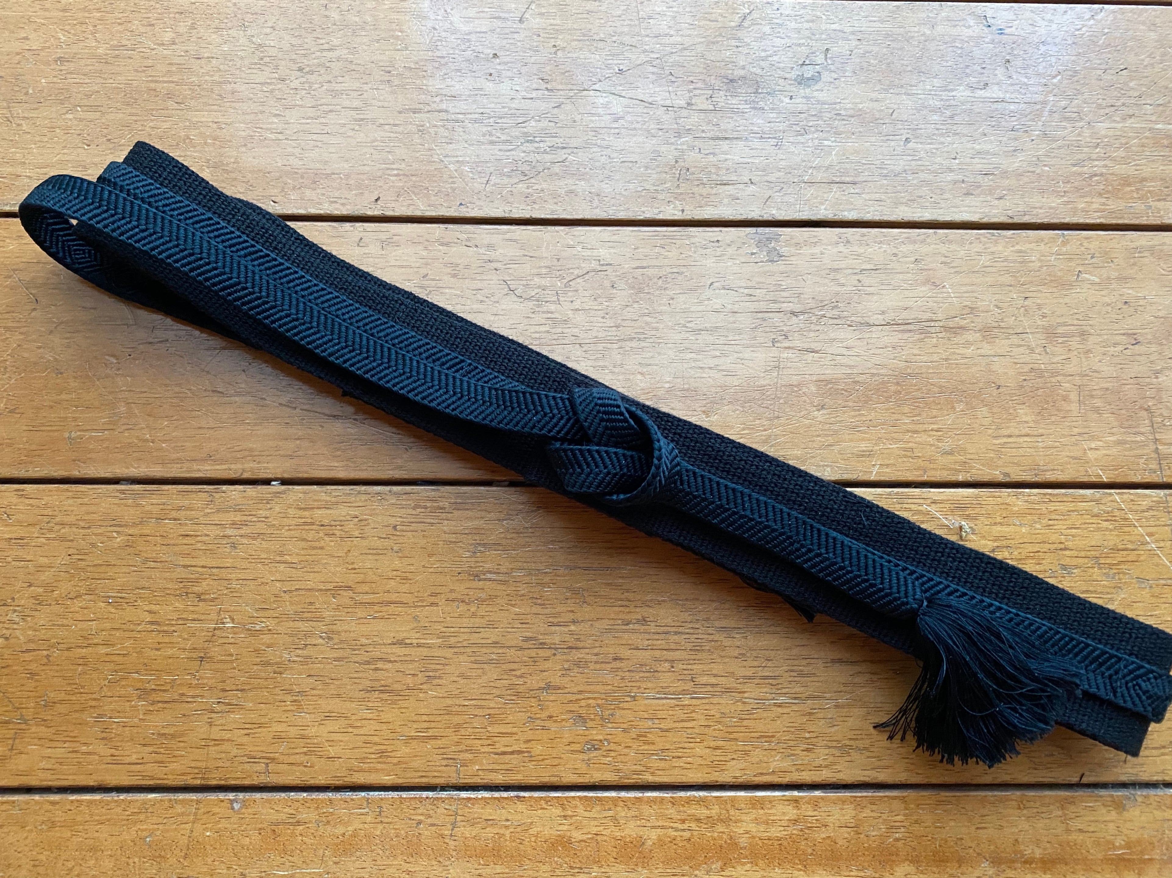 帯締めを使ったベルト。ウエストサイズが78〜84センチくらいの方に合うように作りました。ベースは3.8センチ幅のアクリルコード。帯締めは絹100% コード部分の長さ約82センチ。