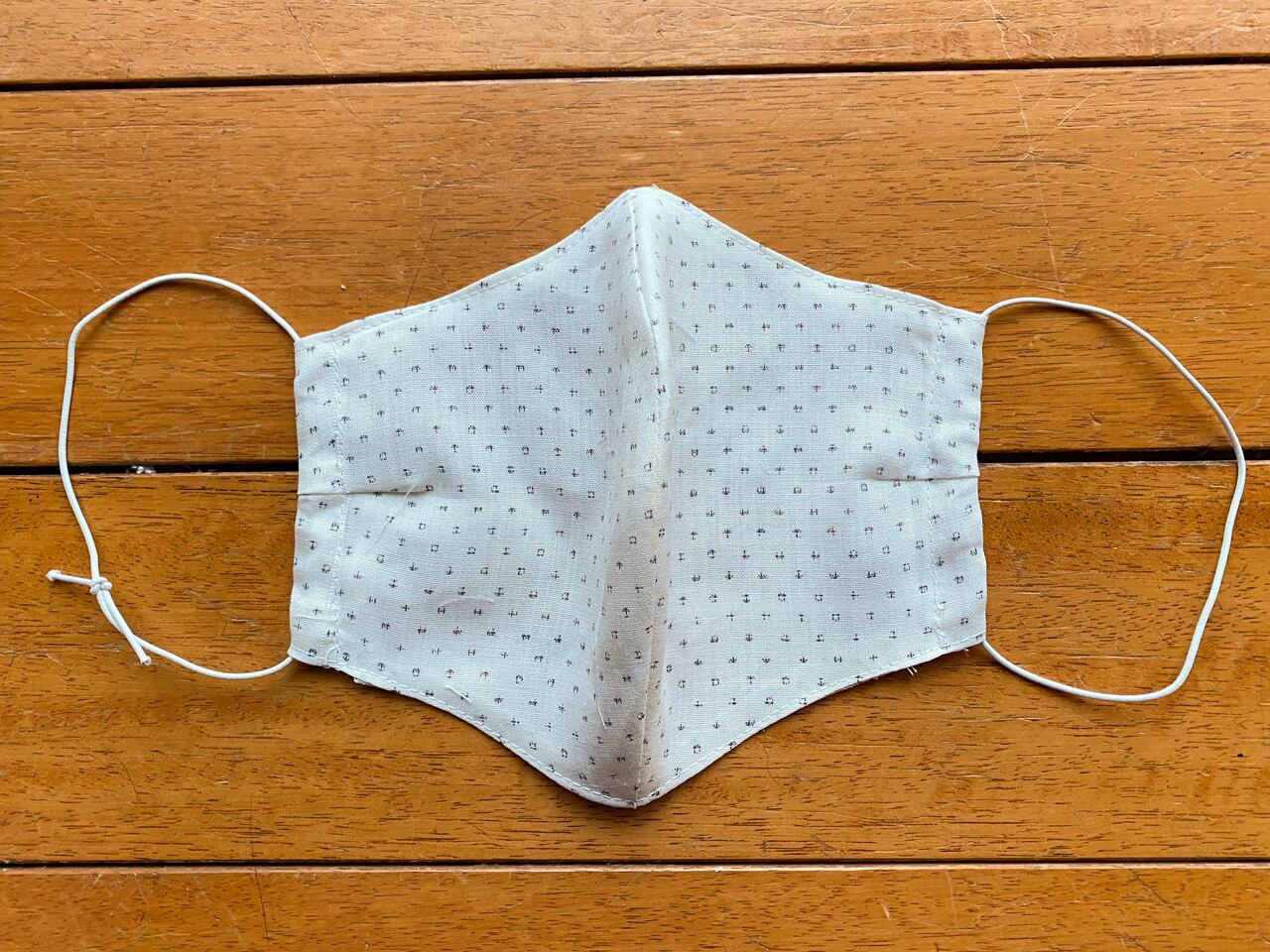 こちらはゴムを好きなサイズに結んでお使いいただける仕様になっています。結び目はマスクの折り目の中に入れてご使用ください。片方の結び目を出した状態でお届けします。
