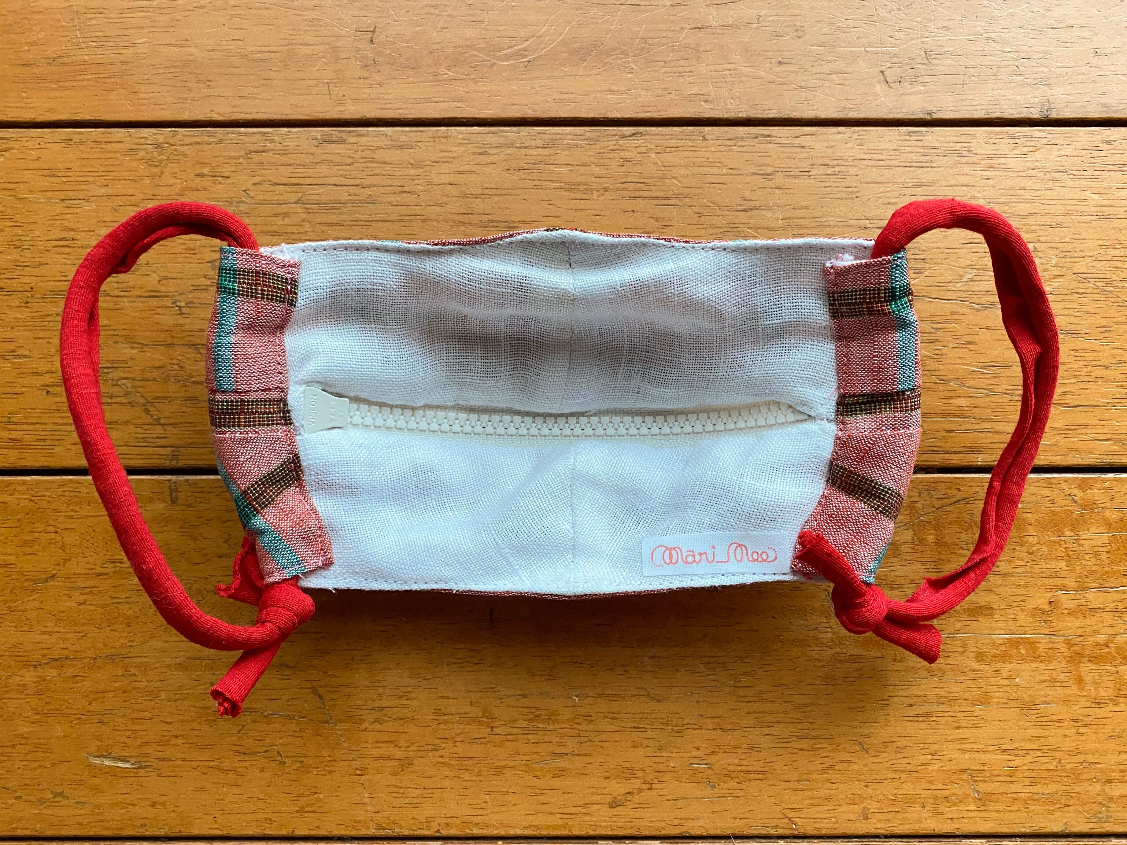 チャックは開けることができます。(写真では下に不織布マスクをつけています)ちょっとものを口に入れたり、ストローをくわえることができるので、便利かも!?